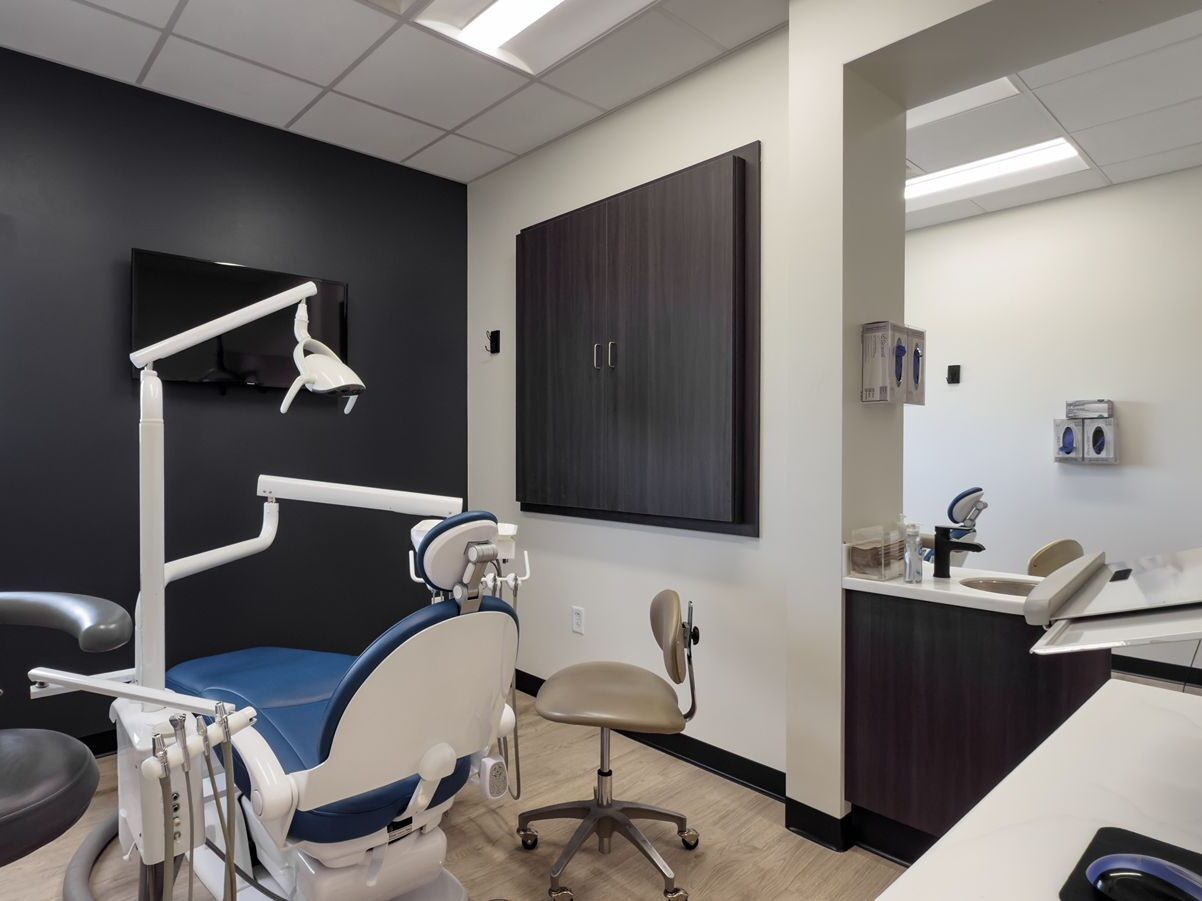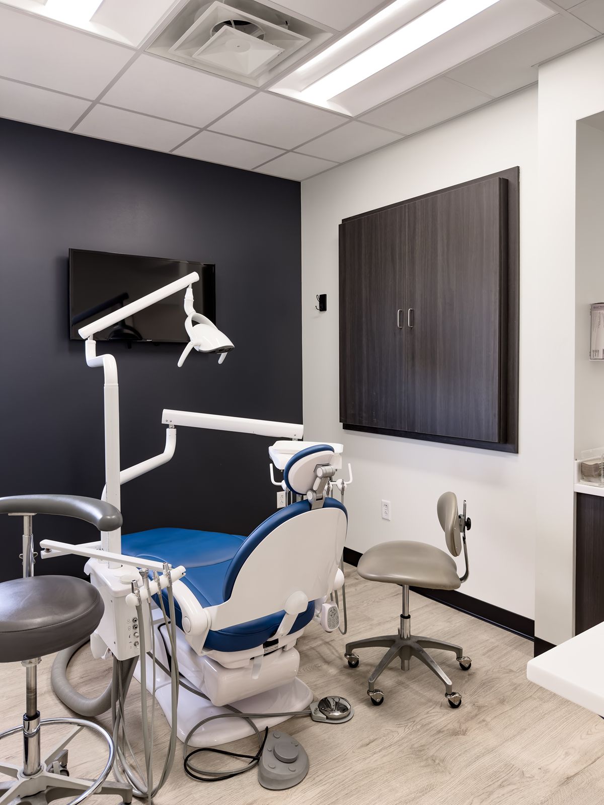 Throughout the exam rooms, sterilization area, and staff spaces, we used a clean, functional material palette that supports clinical work and long-term durability. Neutral cabinetry, bright task lighting, and organized storage keep the space easy to use and maintain. The result is a modern, efficient dental practice that supports Dr. Schmidt’s growth while creating a welcoming experience for every patient.