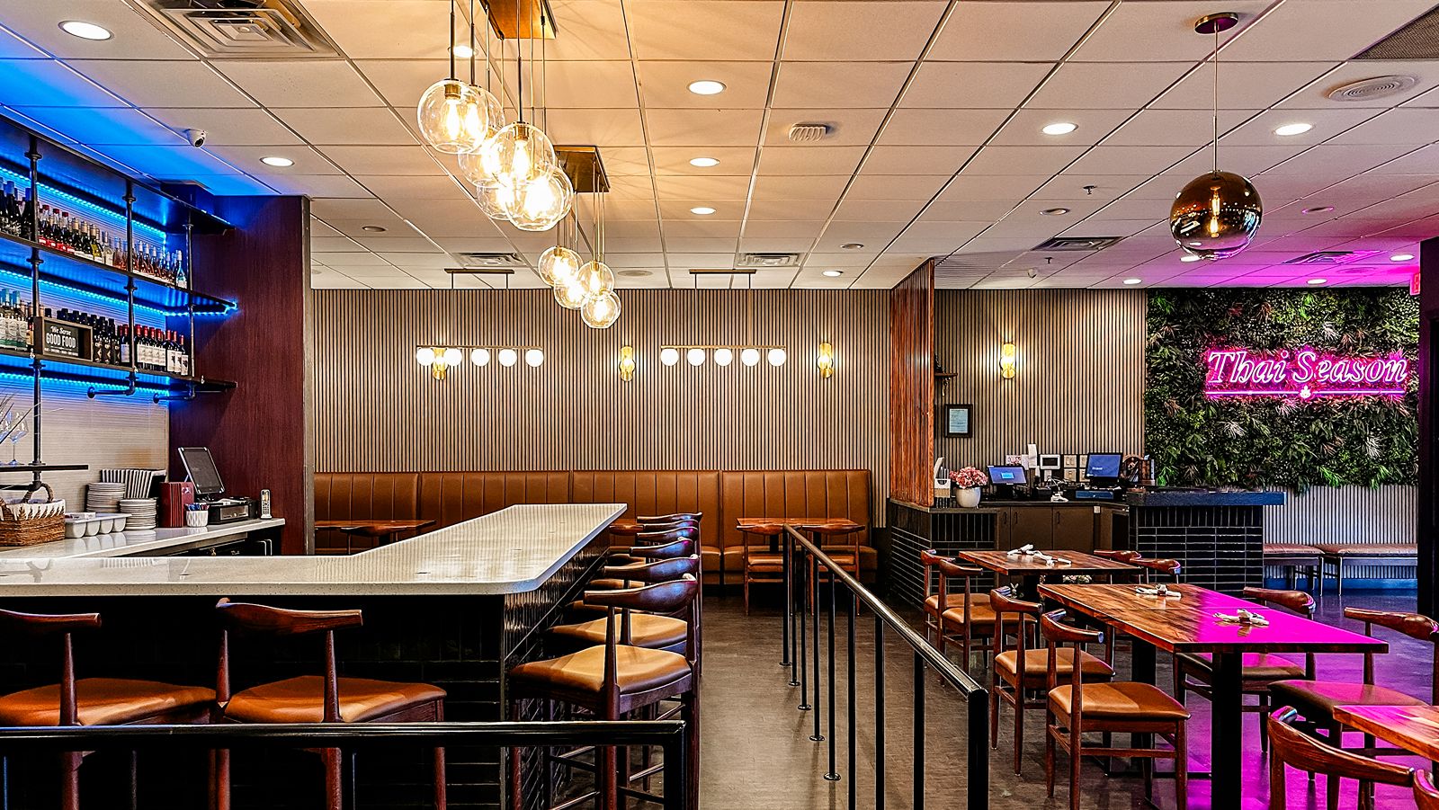 A 3,228 square foot interior tenant improvement project in Carmel, IN, transforming a former restaurant space into Thai Season Restaurant. The project includes interior design enhancements, kitchen equipment upgrades, and the installation of a new bar to serve as the focal point of the main dining area.