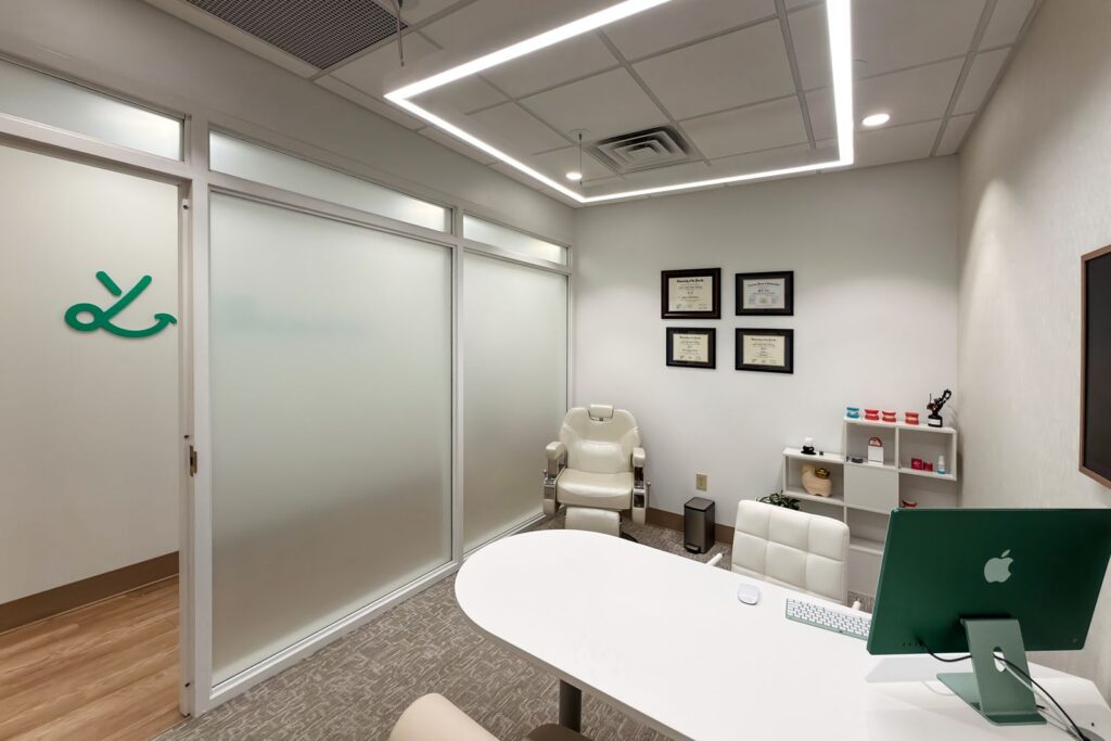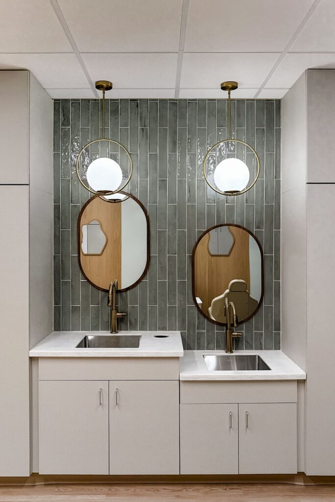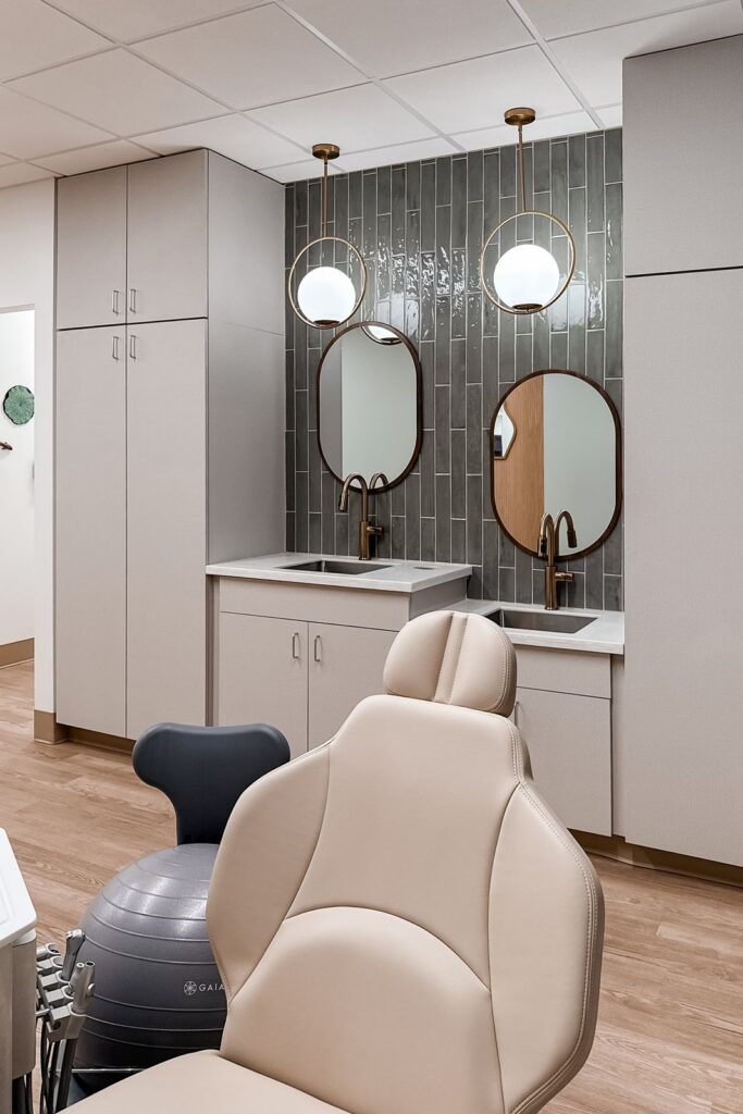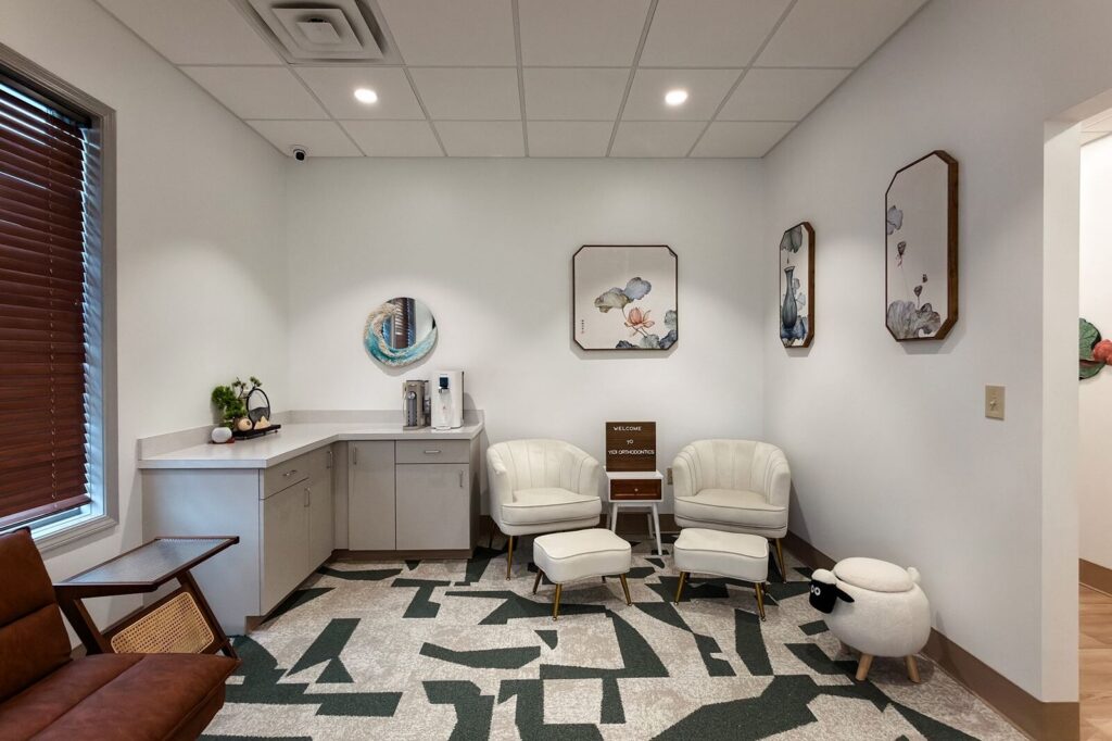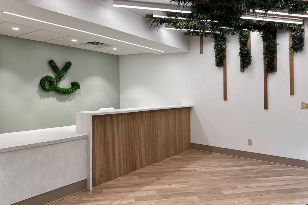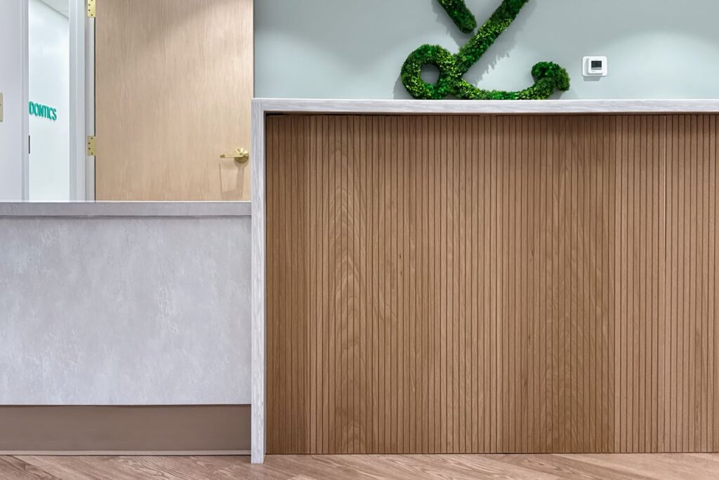 The primary challenge involved transforming a former hot yoga studio into a functioning orthodontic clinic. The design needed to introduce clinical infrastructure while creating a peaceful environment for patients. Dr. Liu wanted the space to incorporate natural references such as wood tones and greenery while maintaining a clean and crisp palette suited for healthcare. The layout also needed to support open treatment areas, private consultation rooms, and efficient circulation for patients and staff.